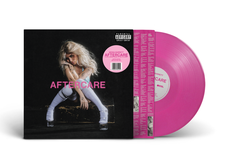 AFTERCARE Pink Glitter Vinyl LP is a limited pressing Nessa Barrett store & tour exclusive. Pressed on Alt Pink Glitter vinyl, housed in a gatefold jacket. Nessa Barrett’s sophomore album, “AFTERCARE”, explores all of the complex emotions surrounding love, sex and the aftermath. The album showcases the wide range of emotions that one experiences through physical and romantic relationships. Please note that the surface noise level of Glitter records is higher than single color or regular mixes.
