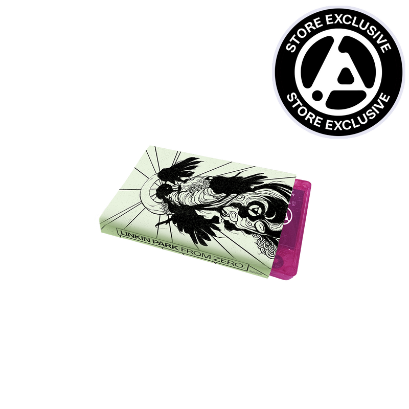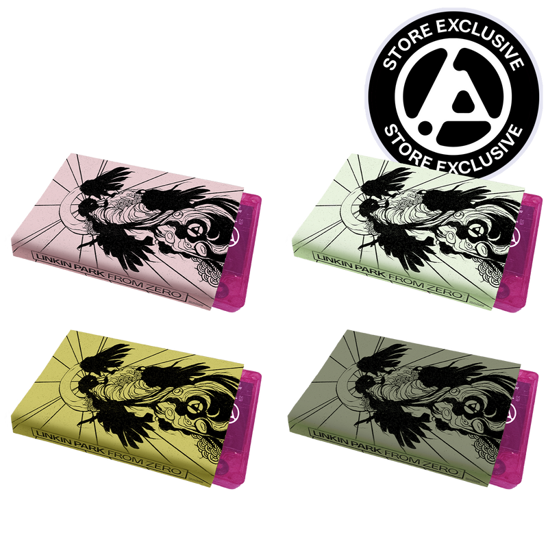 From Zero Alternate Cover Cassette is a limited pressing exclusive to the official Linkin Park music store. Features exclusive art designed by Mike Shinoda, printed on four different color paper sleeves (pink, light green, yellow, and dark green). Please note, the cassette sleeve color will be randomly selected during order fulfillment.