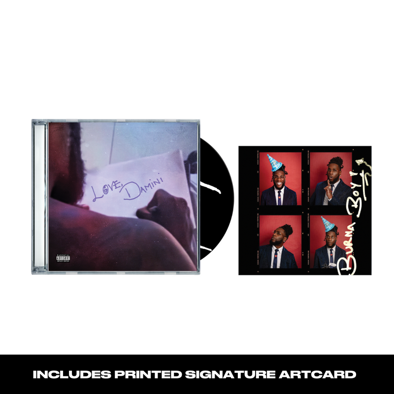 Burna Boy's new album Love, Damini on CD, alternate cover 1. Includes an artcard with a PRINTED signature.
