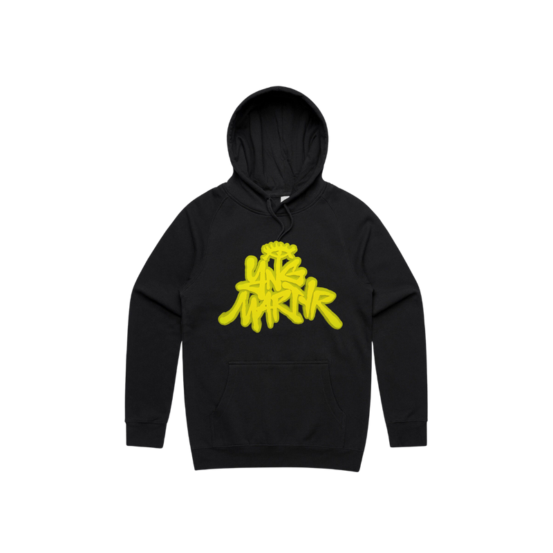 'YNG Martyr' logo printed on a black unisex hoodie.