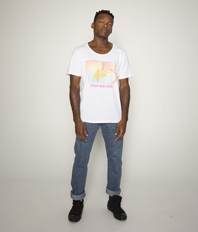 This "T and S" multi-colored, gradient design is inspired by a vintage MTV logo.