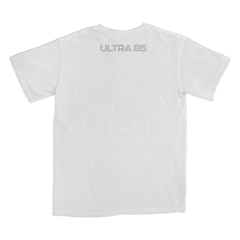 The Ultra 85 Album Cover T-Shirt is a classic fitting unisex t-shirt in white featuring the Ultra 85 album art printed on the front.